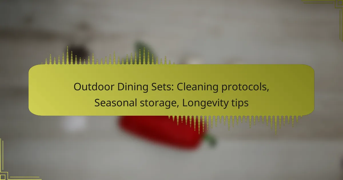 Maintaining outdoor dining sets is crucial for their longevity and appearance. Implementing effective cleaning protocols, ensuring proper seasonal storage, and following material-specific care tips can significantly enhance the durability of your furniture. By taking these steps, you can enjoy your outdoor dining experience for many seasons to come.