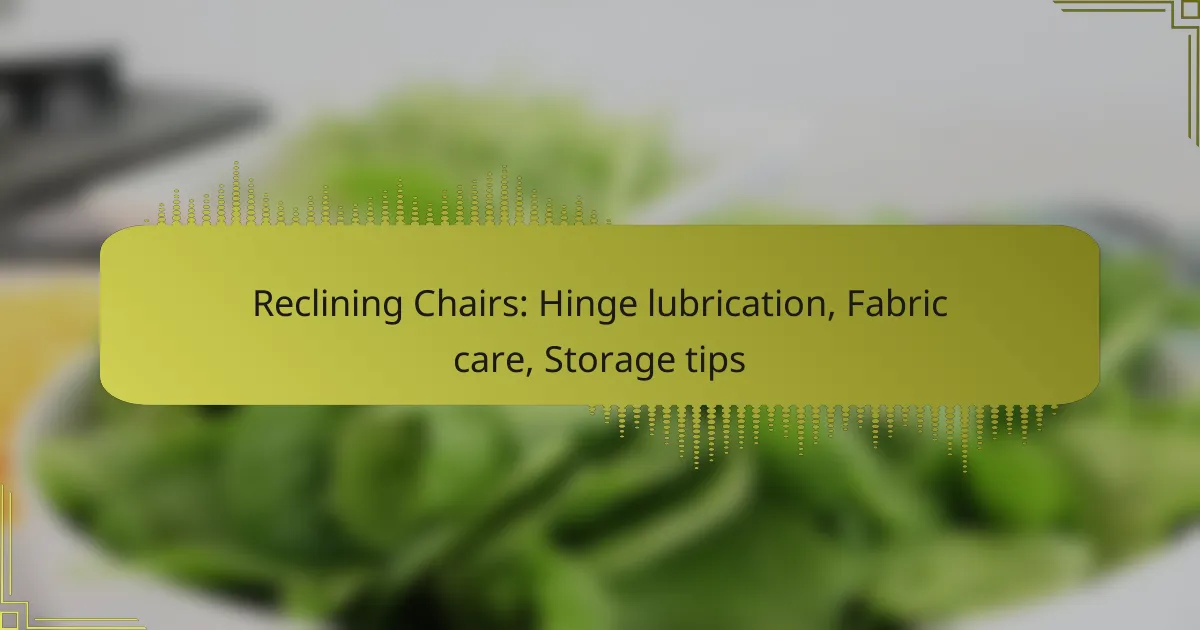 Key maintenance practices for reclining chairs include regular hinge lubrication, proper fabric care, and appropriate storage techniques. These practices help extend the life of the chair and ensure optimal functionality and appearance.